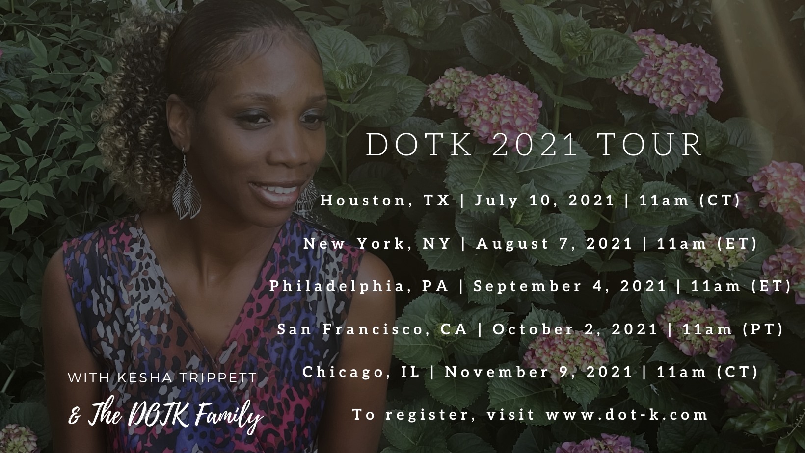 DOTK Family! We are looking forward to seeing you in Houston, Texas at 11am (US Central Time). Kesha Trippett will be gathering with you for a time of worship and encouragement. No food will be served, however, we may serve tea or coffee. If you’ve already purchased tickets from the previous scheduled tour, your ticket Read More »DOTK Tour Texas
